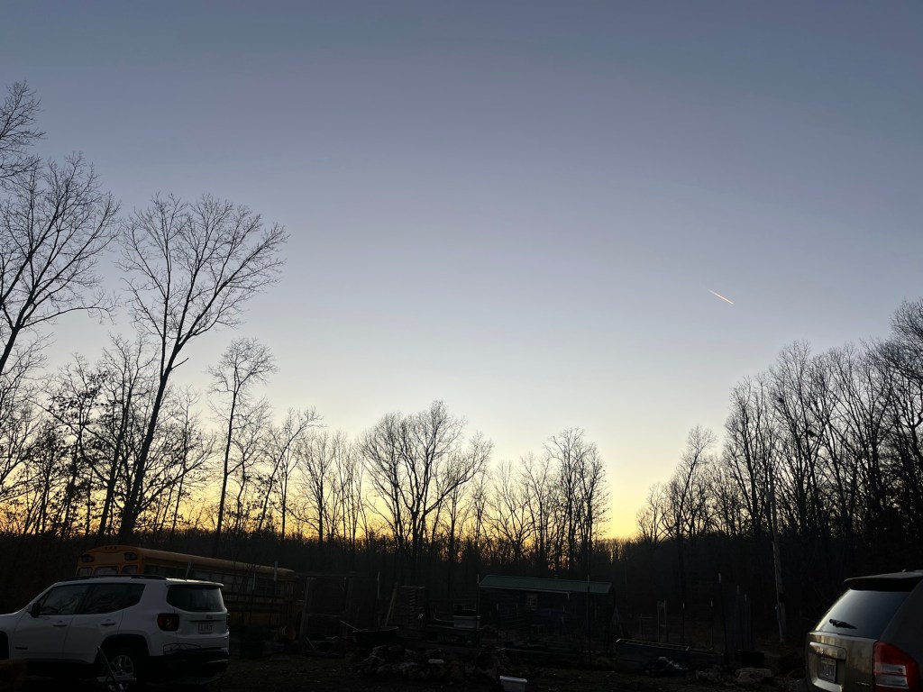 So, picture this, the grand plan was to greet the sunrise with a mindful walk. The reality? My cozy bed had me by the neck, and I woke up late. Again. And when I finally peeked out the window? A bone chilling scene that had zero appeal for walking. With that being said, my partner made some hot tea for everyone as we settled back into our blankets.